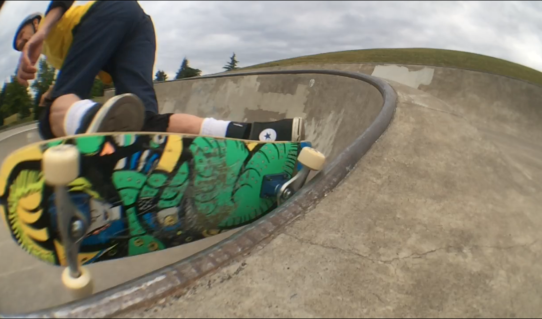 The skating bug flowed back into my veins again after years of dormancy. It all happened in a flash. After another couple epic morning seshes, boom, I was back in the saddle. After a couple of weeks I moved on to my local park and started hitting the bowl hard. Becoming so fun, it began dominating my thoughts. However, it wasn’t all PDX roses, I paid the price right off the bat. Tail bone crack trying to drop in, rolled ankle and broken foot after a collision in the bowl, both wrists crackly and sore and the worst really, a knee smacker which resulted in a bone bruise that hurt for weeks. Since the knee, I wear full pads and a helmet for every session regardless of the uncool factor. New schoolers may not have been down injury road yet, but I have. I still have a protrusion on the back of my skull from a double head smack on the bottom of a pool from longer ago than most new schoolers are old. However, the more I go, the less I fall and the better I get. Watching and studying rippers at the park like I used to do with surf videos helps greatly as well.